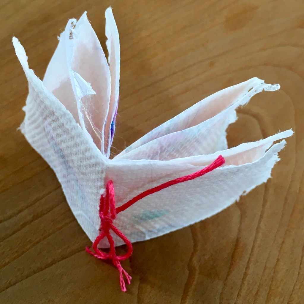 I enjoyed those sunny days in Sussex (and Lucy Baxandall is an excellent tutor). Loved the whole sloppy watery messy mess, the repeated action of pulling sheets of paper, the sheer magic of making this wonderful material from what appears to be nothing. I loved beginning to learn the hitches, trying out different techniques, adding bits and pieces to the vat or to the sheets, experimenting with pulp made of different fibres. Loved the rhythms: mix the pulp in the vat, pull the sheet, watch the water drip away, couch the sheet, rinse the mould, pull the next sheet, couch it. Pull, couch, pull, couch. Press the stack of wet sheets, hang them out to dry etc etc.