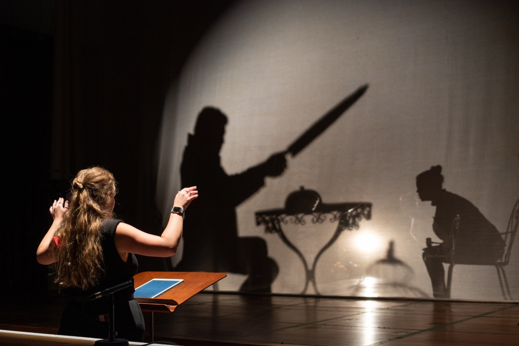 The work is short, under 30 minutes, and displays confidence in not trying to be longer than necessary. The story’s prologue, where Rotten Kid loses all the family’s money gambling, is presented simply as an instrumental introduction with projected cartoon drawings telling the story. This and the later use of shadowplay draw cross-cultural elements into the theatrical presentation, yet in a way which feels imaginative and contemporary, as well as being a neat solution to presenting a new opera economically.